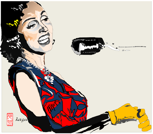 Jazzシンガー「Anita O'Day」。以前に描いたイラストをベースに、面構アニタ・オデイ「Anita O'Day」として、リメイクしました。面構 Anita O'Day 印象画、切線画。